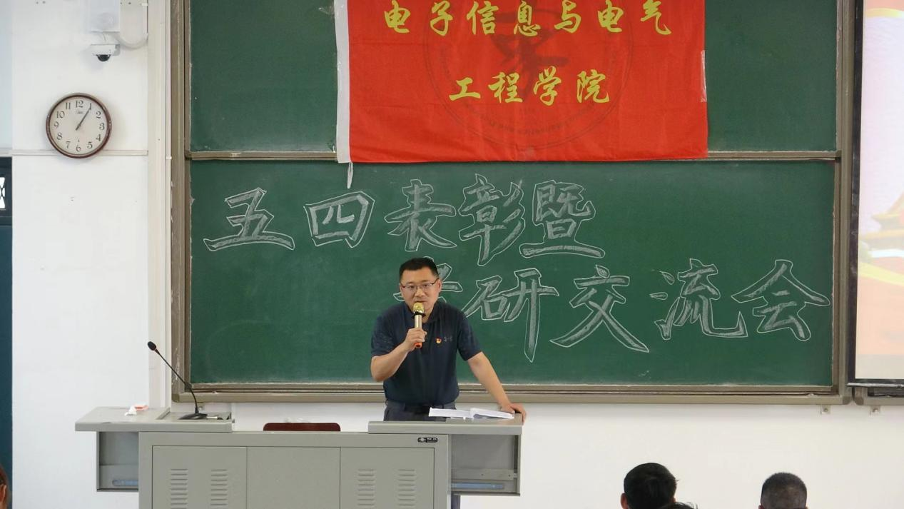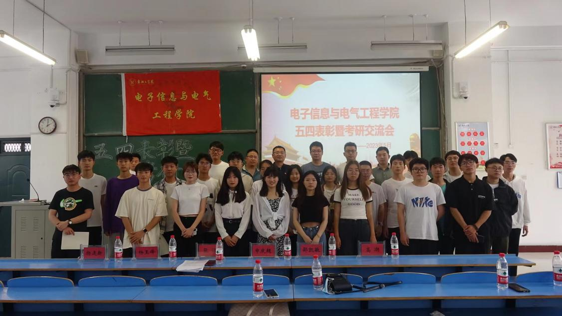 为更好的鼓舞同学们,表彰为公司工作做出贡献的优秀青年员工,bevictor伟德官网于5月31日在A19-203举办了“2023年五四表彰大会暨考研交流会”。参会人员有党总支副书记张涵、团总支书记申庆超、各专业辅导员老师、考研优秀员工代表、2020级、2021级和2022级优秀员工代表,共计200余人。