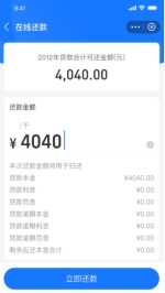 进入还款页面后,可以输入本次还款金额,会根据输入金额自动拆分对应的本金和利息。