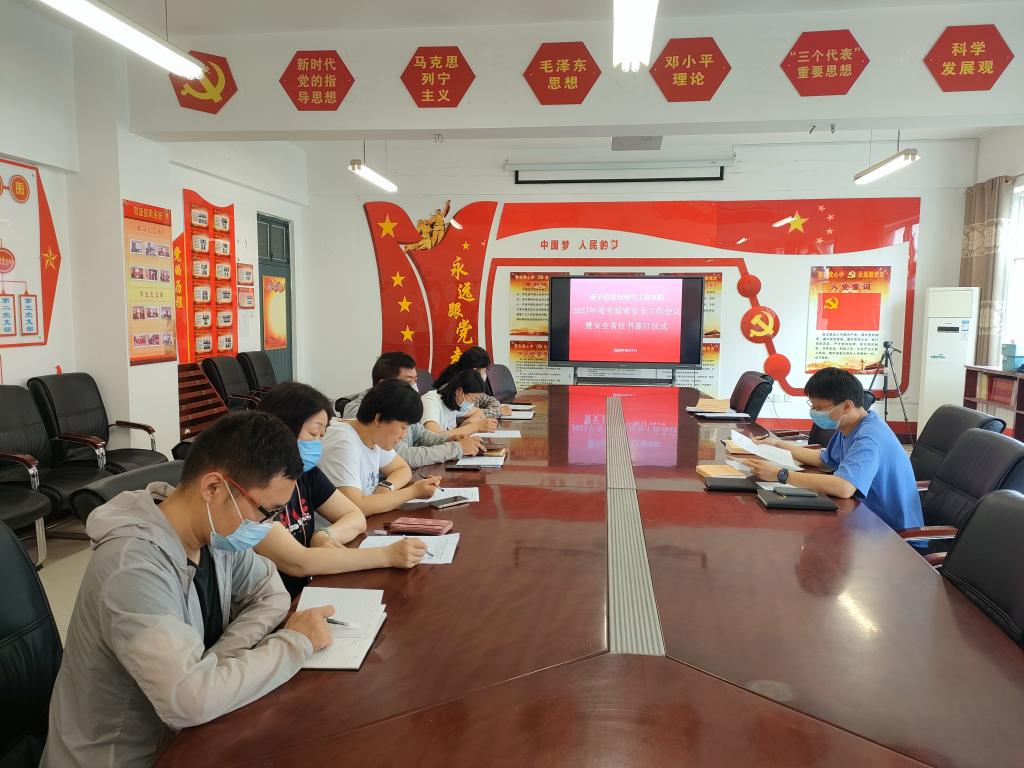 李立传达了公司《2023年度防汛工作会》《关于开展公司建筑物安全隐患排查的通知》《开展2023年“实验室安全生产月”活动》等会议、文件精神,就公司2023年度实验室安全工作做了部署,并对汛期实验室安全工作做了详细安排。副经理李立代表公司与实验中心主任李晓红、电工电子实验中心主任杜章永签订了实验室安全责任书;李晓红和杜章永分别代表实验中心和电工电子实验中心与各实验室管理员签订了实验室安全责任书。