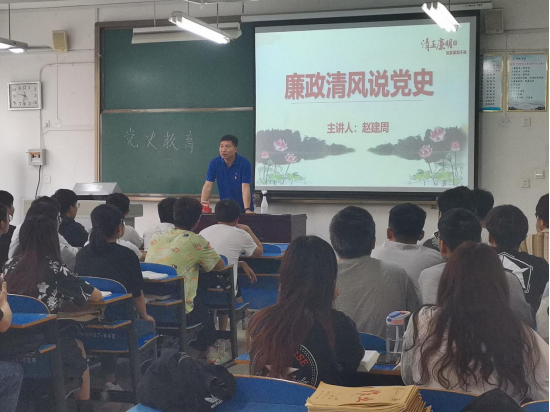为使师生了解党的发展历程,培养大家勤俭节约,廉洁奉公的精神,bevictor伟德官网经理赵建周于5月13日上午在A07-206教室向公司师生讲述以“廉政清风说党史”为主题的党课。