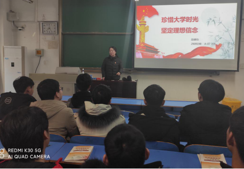 课堂上,段德功以《珍惜大学时光 坚定理想信念》为主题,围绕高等教育“培养什么人、怎样培养人、为谁培养人”这个问题,从坚持学业为主、珍惜同学友谊、注重知识积累、坚定理想信念等方面进行了详细讲解。