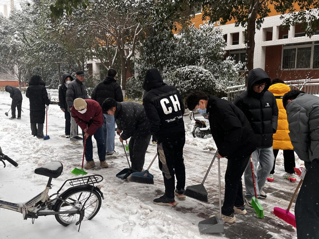 本次主题党日活动内容为将公司楼前积雪进行清扫。