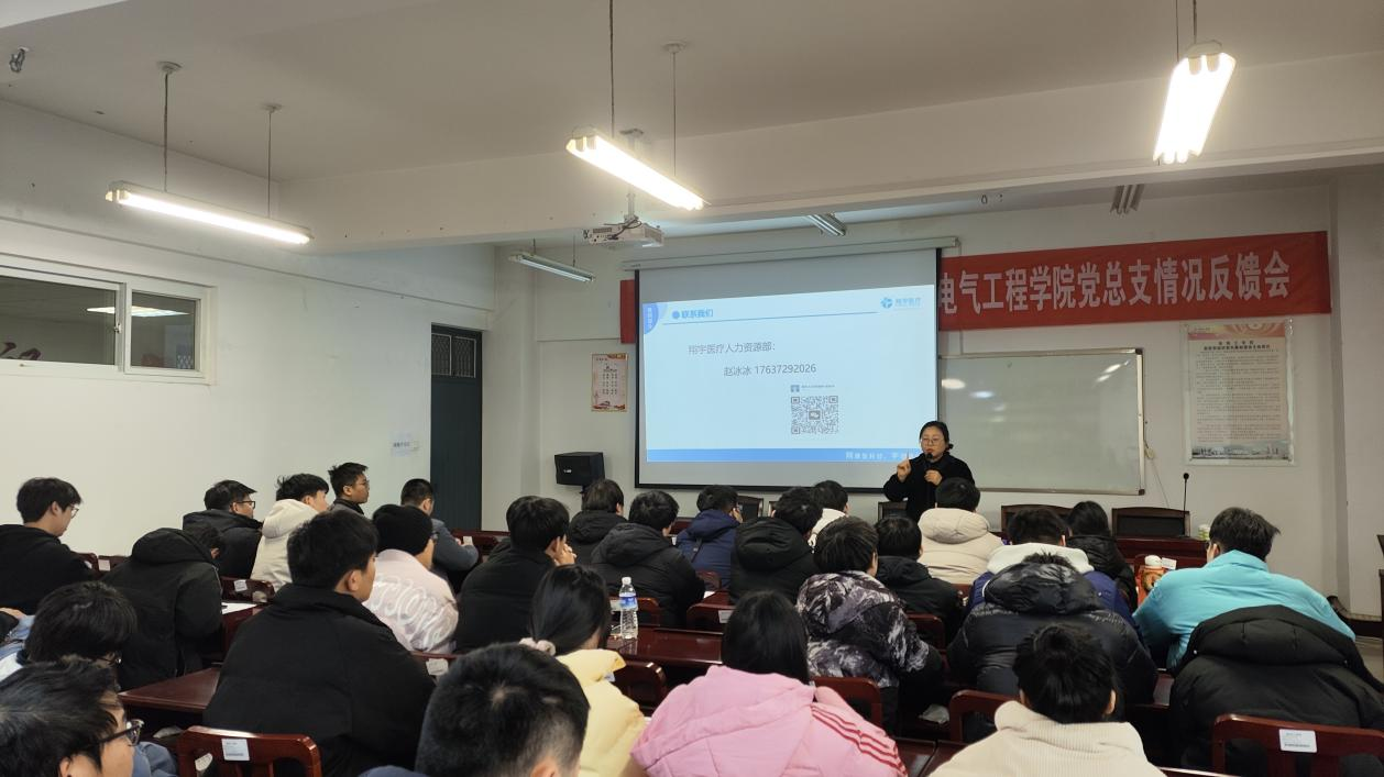 12月28日下午,河南翔宇医疗设备股份有限公司人力资源部总监赵华龙、人事经理赵冰冰等一行三人来公司召开专场招聘,公司2024届毕业生积极应聘。