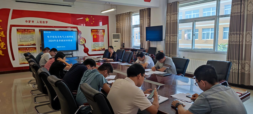 根据《韦德官方网站教材建设与管理规定》和《关于2024年春季教材评价的通知》(安工教务﹝2024﹞33号)要求,2024年7月4日下午,电子信息与电气工程公司在A-07 308会议室召开2024年春季教材评价会。公司教材建设委员会工作小组全体成员参会,副经理段德功主持会议。